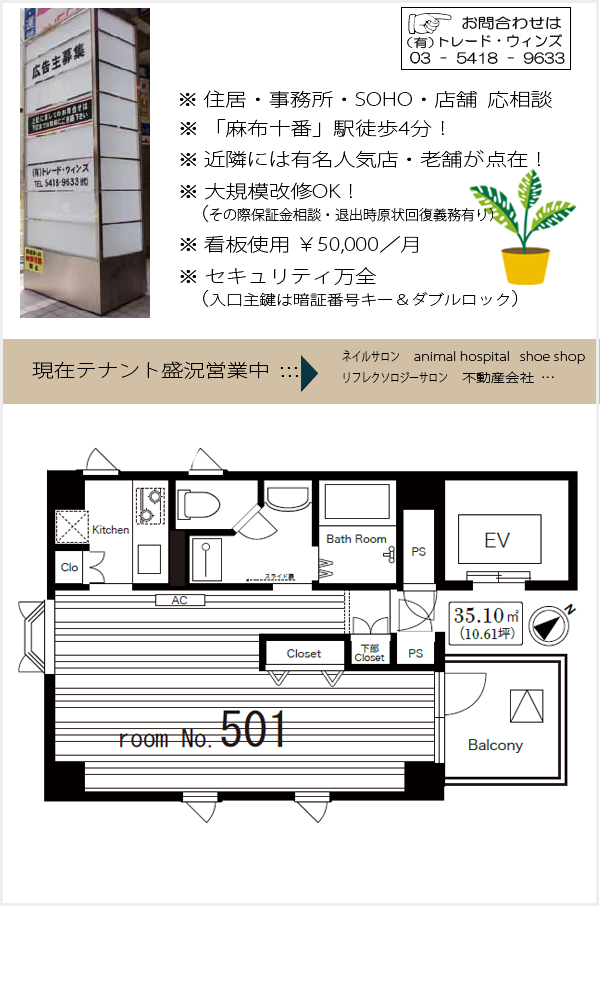 | 交通 | 南北線・大江戸線 「麻布十番」徒歩4分 |